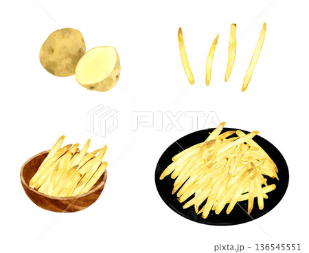 フライドポテトのセット 料理・食べ物の手描き水彩イラスト素材