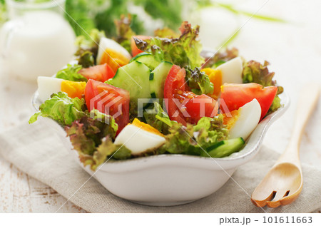 ゆで卵と彩り野菜サラダ