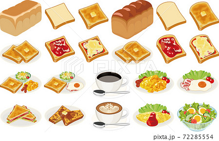 朝食の食パンイラスト(バタートースト、ジャムトースト、ピザトースト)