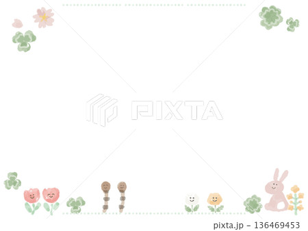 幼稚園向け かわいい 横長フレーム 背景 手書き パステル イラスト