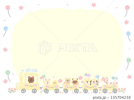 動物たちが汽車に乗るかわいい背景フレーム(タテ)