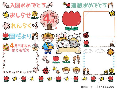 幼稚園・保育園向け 4月のやさしい水彩挿絵イラストシリーズ|おたより制作フルセット
