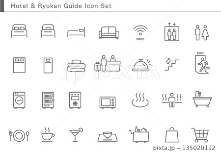 宿泊施設向け 館内設備・サービス案内の線画アイコンコレクション