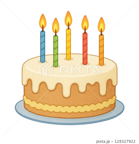 カラフルキャンドル付きバースデーケーキのイラスト