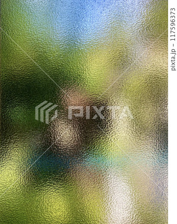 曇りガラスに透けて見える緑の景色 背景素材