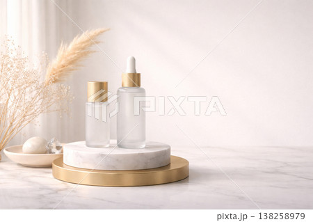 高級感あるゴールドと白のスキンケアスタイリング