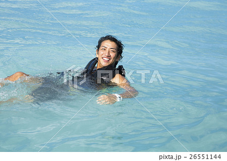シュノーケリングをする女性