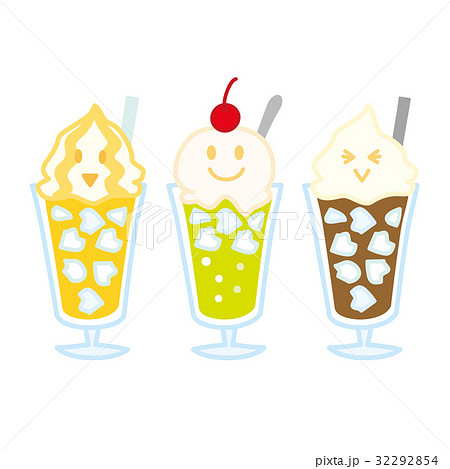 かわいい ソフトクリーム アイスクリーム クリームソーダのイラストセット