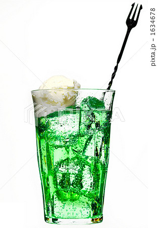 クリームソーダ 冷たい飲み物 ソフトクリームとメロンソーダ メロンフロート イメージ素材