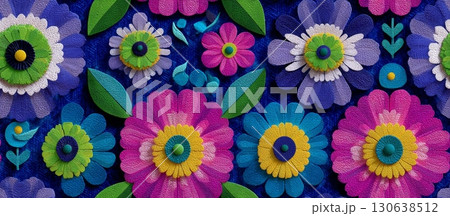 Colorful Seamless Flower Pattern with Textures and Details
