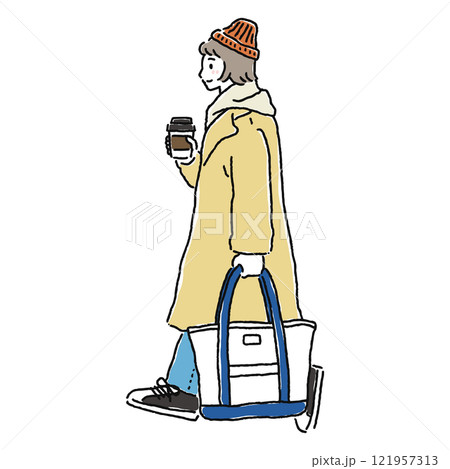 テイクアウトのコーヒーを持って歩く女性 横顔