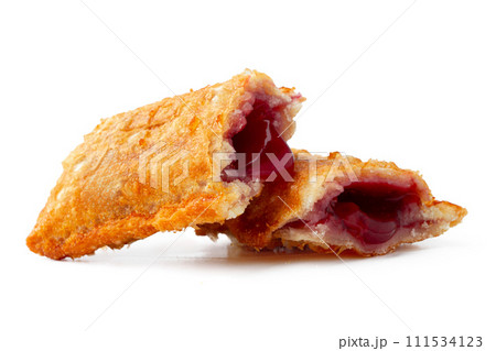 National traditional Caucasian cuisine Ossetian pie with beef meat. White background. Top view. Copy space