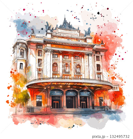 Teatro Colon. Teatro Colon hand drawn watercolor illustration