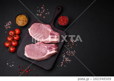 Raw pork steak loin with bone