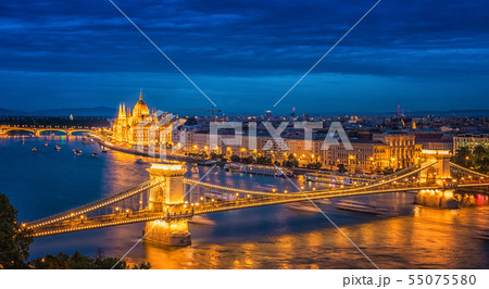 Panorama of Budapest at night. Hungarian
