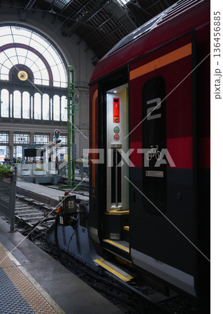 ブダペスト東駅構内に停車中の列車のイメージ