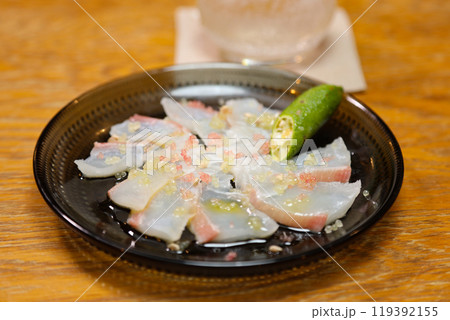 鯛のカルパッチョ フィンガーライムを添えて鯛のカルパッチョ フィンガーライムを添えて