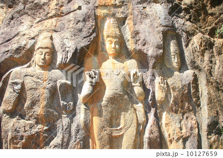 ブドゥルワガラ・ロックの磨崖仏 菩薩三尊