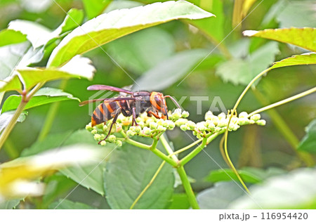ヤブガラシ訪花昆虫 スズメバチ科オオスズメバチの吸蜜