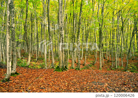 【森林素材】秋の美人林・紅葉したブナの森【新潟県】
