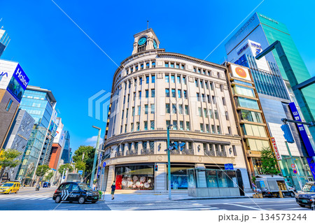 東京 中央区 銀座の都市風景 銀座四丁目交差点付近