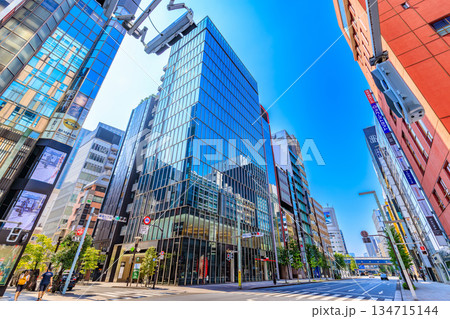 東京 中央区 銀座の都市風景 銀座一丁目交差点付近
