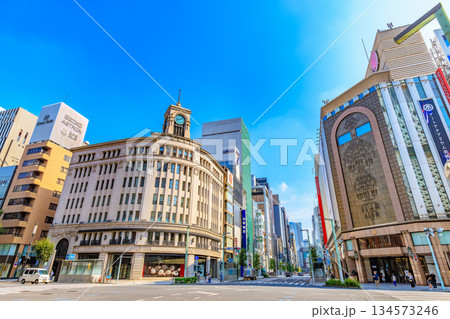 東京 中央区 銀座の都市風景 銀座七丁目交差点付近