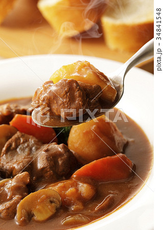 牛タンシチュー。ロールパン・サラダとのセットメニュー。(白皿・白バック)