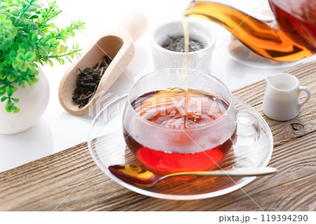 透明なティーカップで紅茶を楽しむ( ホットティー )