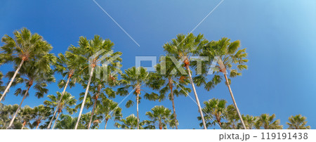 Seamless pattern with cartoon palms. Childish tropical background. Vector illustration