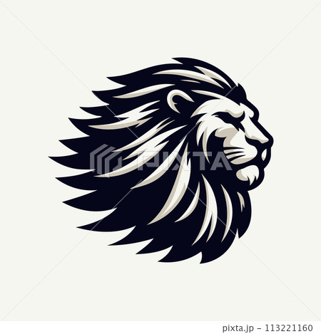 Majestic Black and White Lion Head Illustration