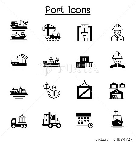 Marine Port Sign Black Thin Line Icon Set. Vector