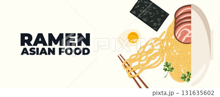 A bowl of ramen soup with chopsticks Asian and Japanese cuisine banner. Perfect for restaurant branding, advertising, menu design, and marketing materials