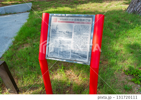 神戸市須磨区 須磨海浜公園に移築された旧和田岬燈台の案内板