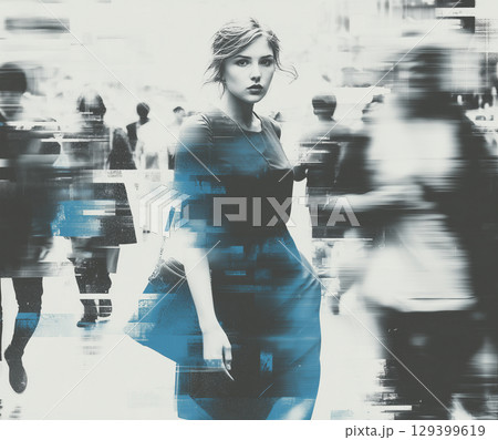 都市の孤独を表現した群衆の中で立ち止まる若い女性のポートレート。社会問題