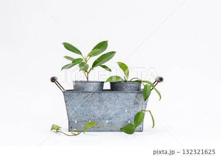 サクララン+ベンジャミン+ブリキの植木鉢_01