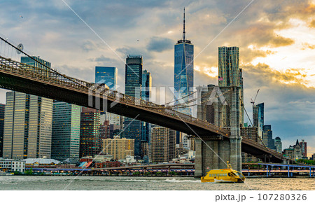 《ニューヨーク》マンハッタンの摩天楼とブルックリンブリッジ