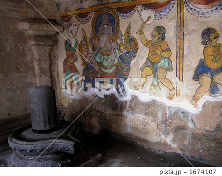 ブリハディーシュワラ寺院のリンガと壁画 南インド