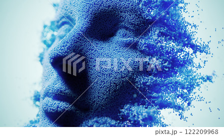 Ethereal Transformation: A Face of Shimmering Blue Particles