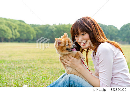 公園で犬の散歩をする家族・夫婦・カップル・男女(走る・ジョギング・ランニング)