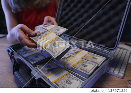 Large amounts of cash stored in a sleek briefcase during a secretive transaction at night