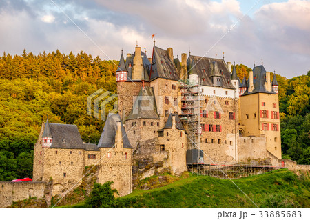 Burg Eltz castle in Rhineland-Palatinate at sunset