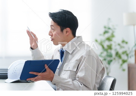 会議する作業着のビジネスマン