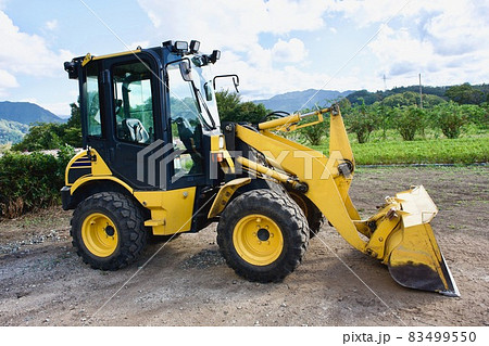 晴れた日の秋丘の上のホイールローダー(タイヤショベル)