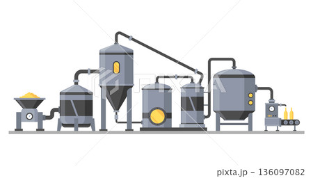 Brewery. Vintage brewing machine concept with tubes and copper tanks. Beer making process equipment, machinery symbol suitable for game asset, infographic or book print. Isolated vector illustration