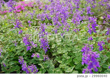 美しいブルーキャットミントの群生