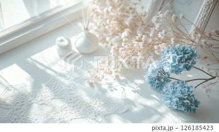 アンティーク雑貨と青いドライフラワー(Generative AI)