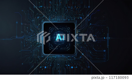 AI-generated content. Human brain neurons, neurological connections, electrical impulses, microchip technology
