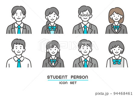シンプルで使いやすい、ブレザー制服の学生の顔アイコンのベクターイラスト素材/制服/高校生/中学生/塾
