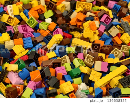 Bright Scattered Blocks Form Texture, Dynamic Collection Of Vibrant Bricks Assembled In Haphazard Manner